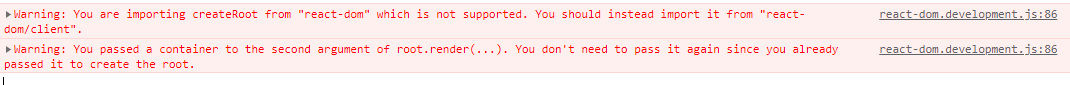 지원되지 않는 "react-dom"에서 createRoot를 가져오고 있습니다. 대신 "react-dom/client"에서 가져와야 합니다.