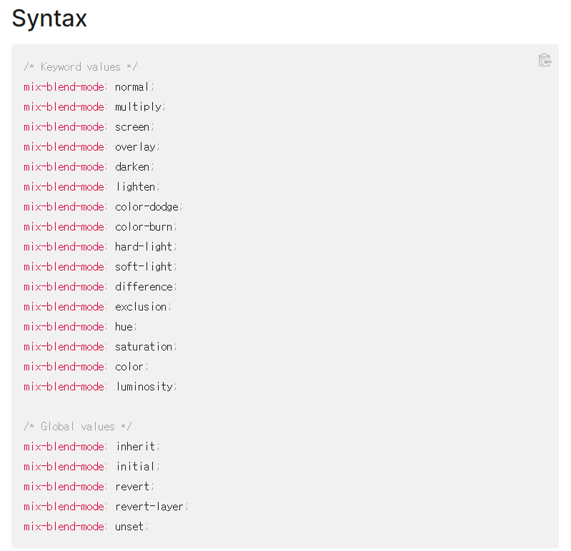 mix-blend-mode는 여러 효과가 있으니 보고 필요한 효과를 사용하면 될 것 같다.