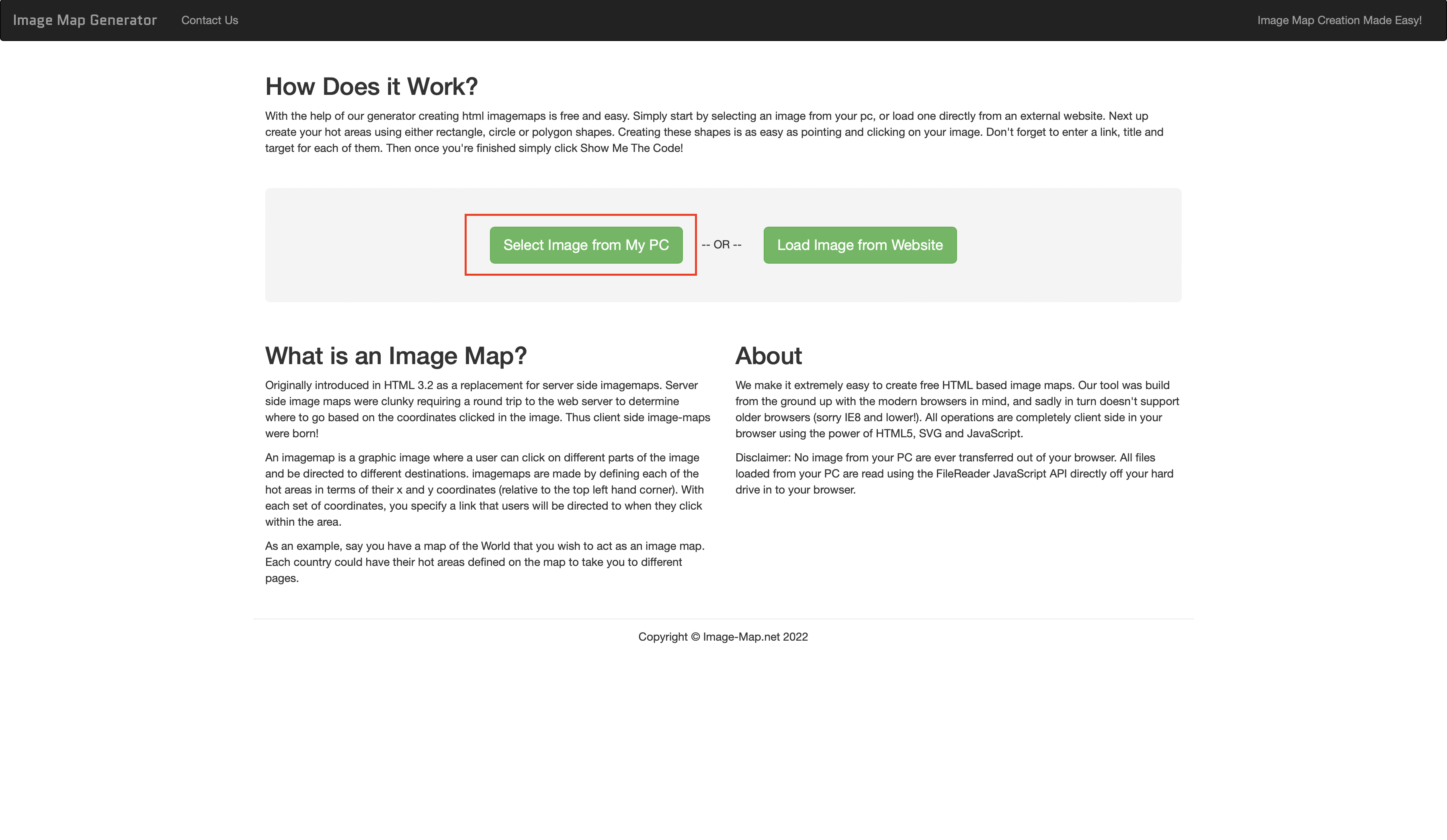 Easy free online html image map generator. Select an image, click to create your areas and generate html your output!