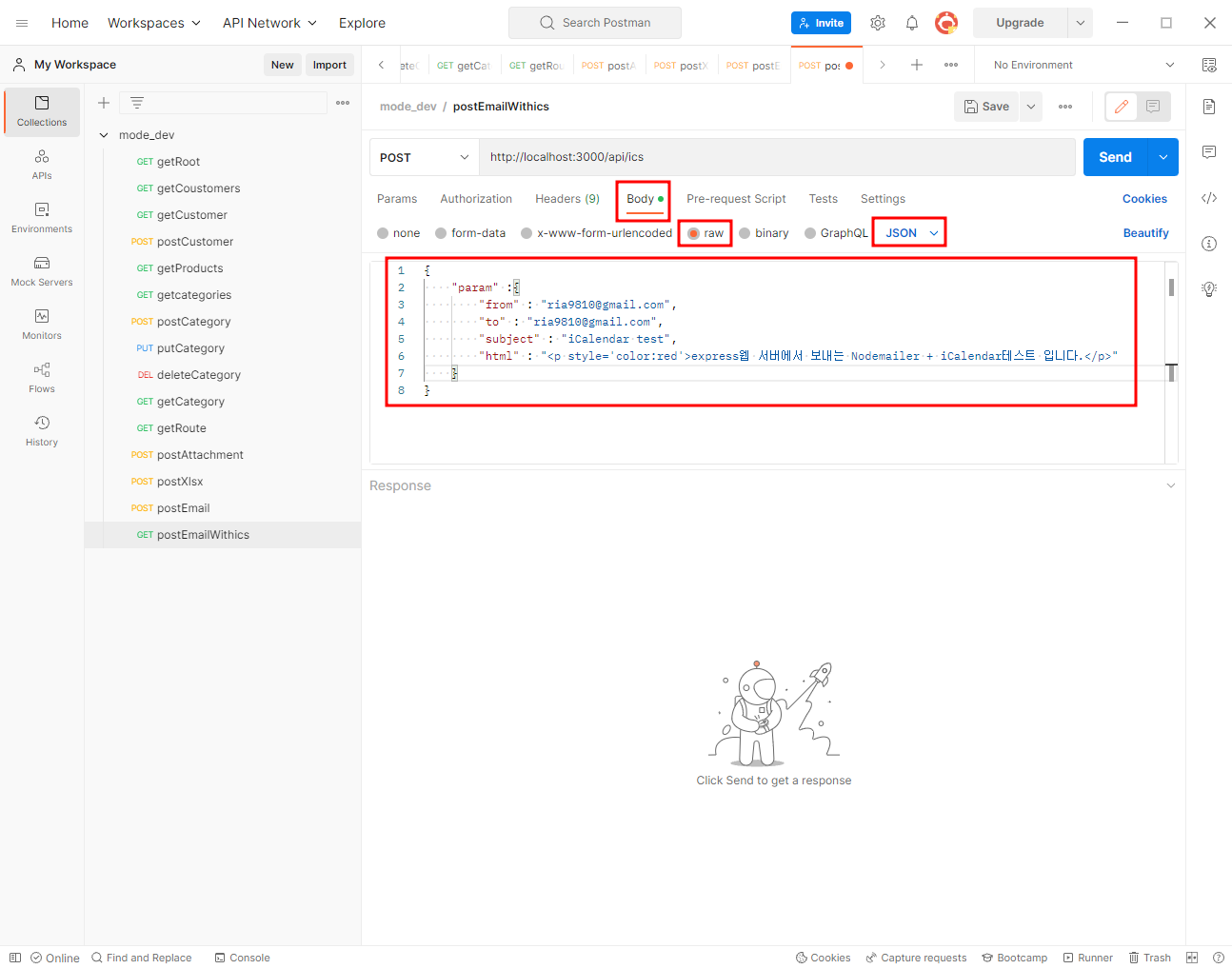 프로젝트 터미널에서 Nodemailer, ics를 설치한다.