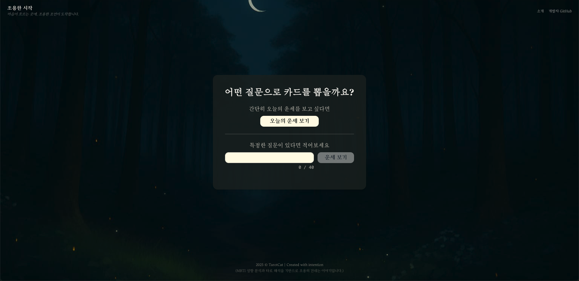 단순한 운세 서비스가 아닌, 자기 성찰과 감정 정리에 도움이 되는 감성 기반 도구를 지향합니다.