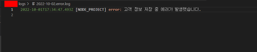 logs/2022-10-02.log파일에는 info와 error 로그가 함께 들어와 있는데 이는 winston에 설정된 level이 info보다 상위인 로그들(0인 error, 1인 warn)이 함께 들어와서라고 한다.
